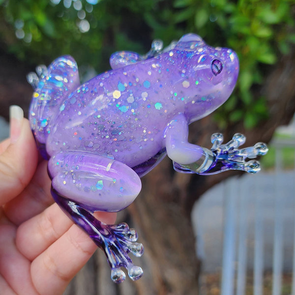Our purple and holographic glitter resin frog is the perfect statement piece for any home!