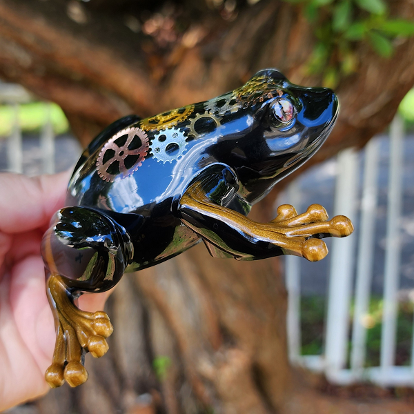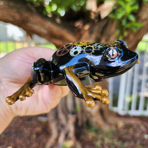 Our steampunk themed resin frog is the perfect statement piece for any home!