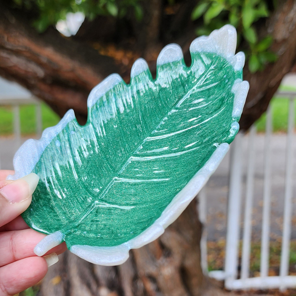 Our Winter green resin leaf tray is the perfect vessel to store all of your precious little belongings such as rings, earrings, necklaces, etc. Or simply use it as statement piece in your home this Winter season!