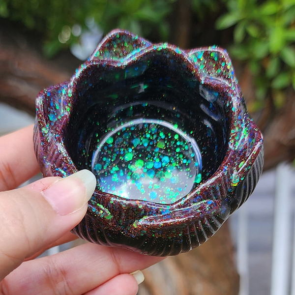 Resin Lotus Trinket Dish - Pink Iridescent Glitter with Black
